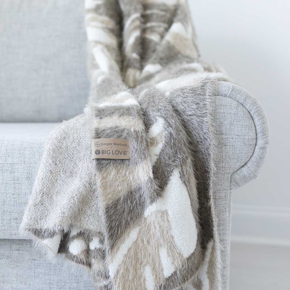 Plush and perfectly oversized, “Pluto” is an elegant riptide of natural-hued swirls. The neutral tones seemingly change from warm to cool, depending on the light. Drape this beauty over your couch or bed for an artistic accent that will keep you warm and luxuriously cozy.