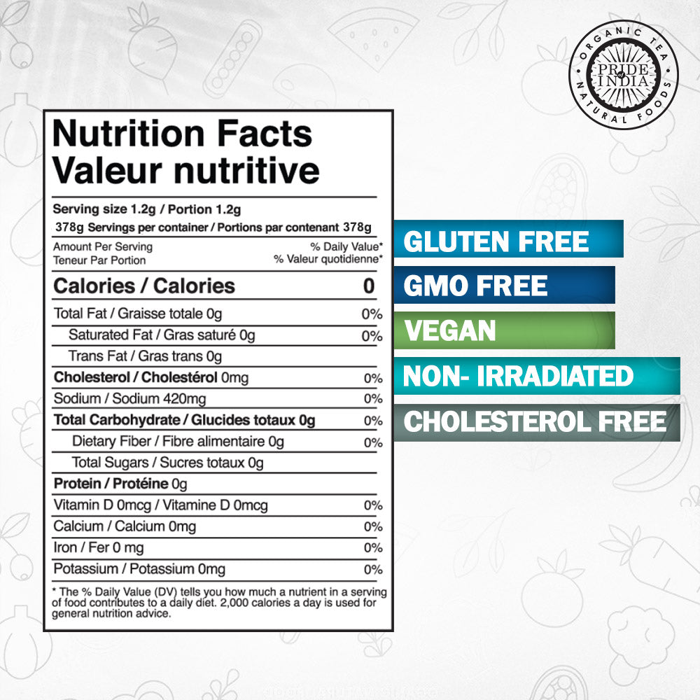 Pride of India Himalayan Pink Rock Salt Coarse Grind incorporates naturally-grown food and herbal products from India into our daily life. This coarse salt contains up to 84 essential minerals that are quintessential for the human body in daily nutrition. The grainy texture, distinct flavor, and easy solubility of our pink salt make it great for kitchen use as well as in the bath. Pink Himalayan salt contains sodium and other electrolytes that can help balance electrolytes, regulate hydration, balance PH levels, and improve metabolism. Commercial table salt contains between 97.5% and 99.9% sodium chloride, while Himalayan sea salt only contains about 87%. Additionally, many table salts go through a bleaching process and may even contain harmful ingredients. These all-natural ingredients help enhance the overall health of the human body. Pride of India is family owned and operated. Our Himalayan Pink Rock Salt is the purest form of salt available on planet Earth because it does not undergo any artificial treatment or refining processes. It is carved out from decades-old, naturally occurring salt reserves at the bed of the giant Himalayan mountains in the Indian subcontinent. The reddish-pink appearance of our pink salt proves its purity.. Our Himalayan salt, however, is natural and doesn’t go through a refining process. Pink salt can be used in salt lamps, as a salt substitute, in bath scrubs, or as a bath salt. It’s also a superior substitute for table salt. Use a pinch in your favorite recipe.
