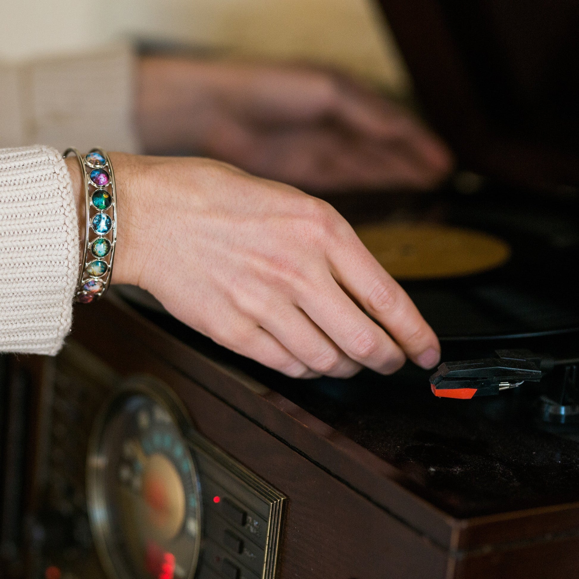 Nebula Rainbow Silver Cuff Bracelet